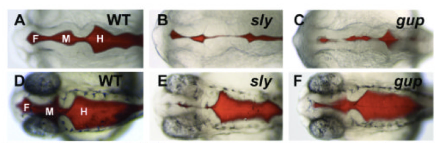Figure 1: Example of brain ventricle comparison (taken from Lowery et al., 2009). Ventricles in gures B and C show an abnormal midbrain-hindbrain boundary compared to WT (A). On the other hand, ventricles E and F show regions mostly recovered compared to WT (D).